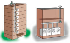 single or multiple heaters with draft hood/diverter or